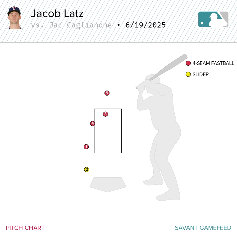 This was the chart from Baseball Savant on how Rangers pitcher Jacob Latz attacked Caglianone.