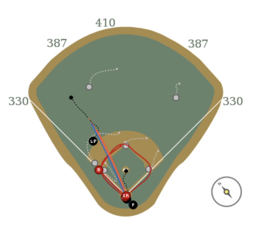 The diagram from Baseball Savant just kind of underscores the ridiculousness of the play. Look where the left fielder finished trying to cut down Taylor at the plate.