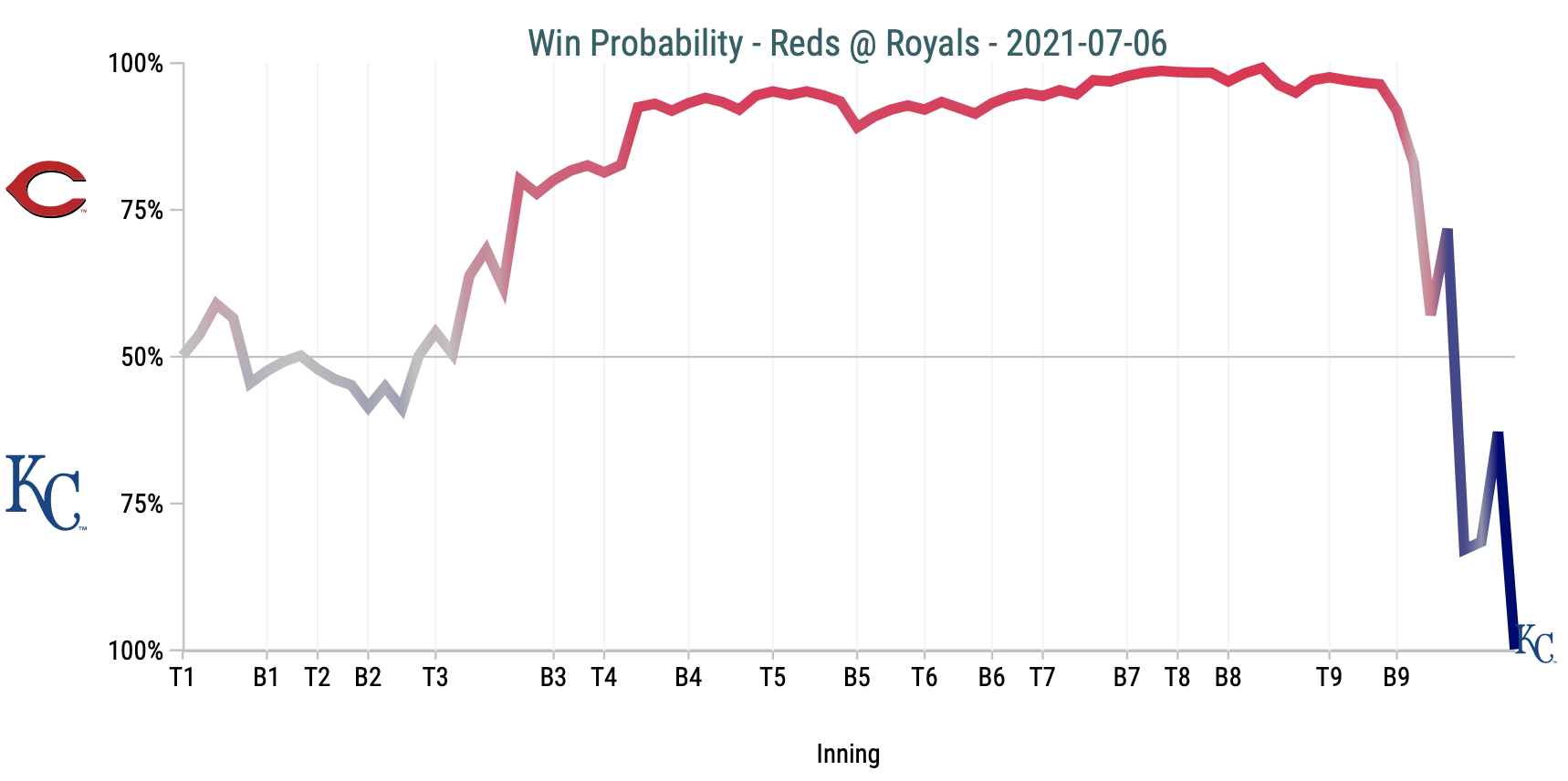 The win probability chart from Baseball Savant perfectly captures the emotions of the evening.