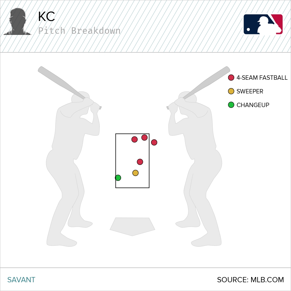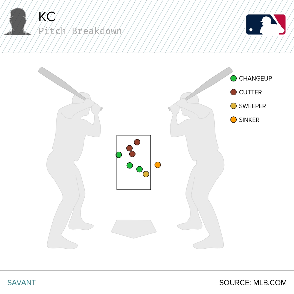 The cutters, in particular, were in prime locations for hitters. The highest one was a first-pitch offering to Vinnie Pasquantino. The second-highest was a 1-0 pitch to Maikel Garcia. Then the one that is middle-middle was a 3-2 pitch to Bobby Witt, Jr. Three of the best the Royals have in their lineup, and they couldn’t do damage on those pitches.