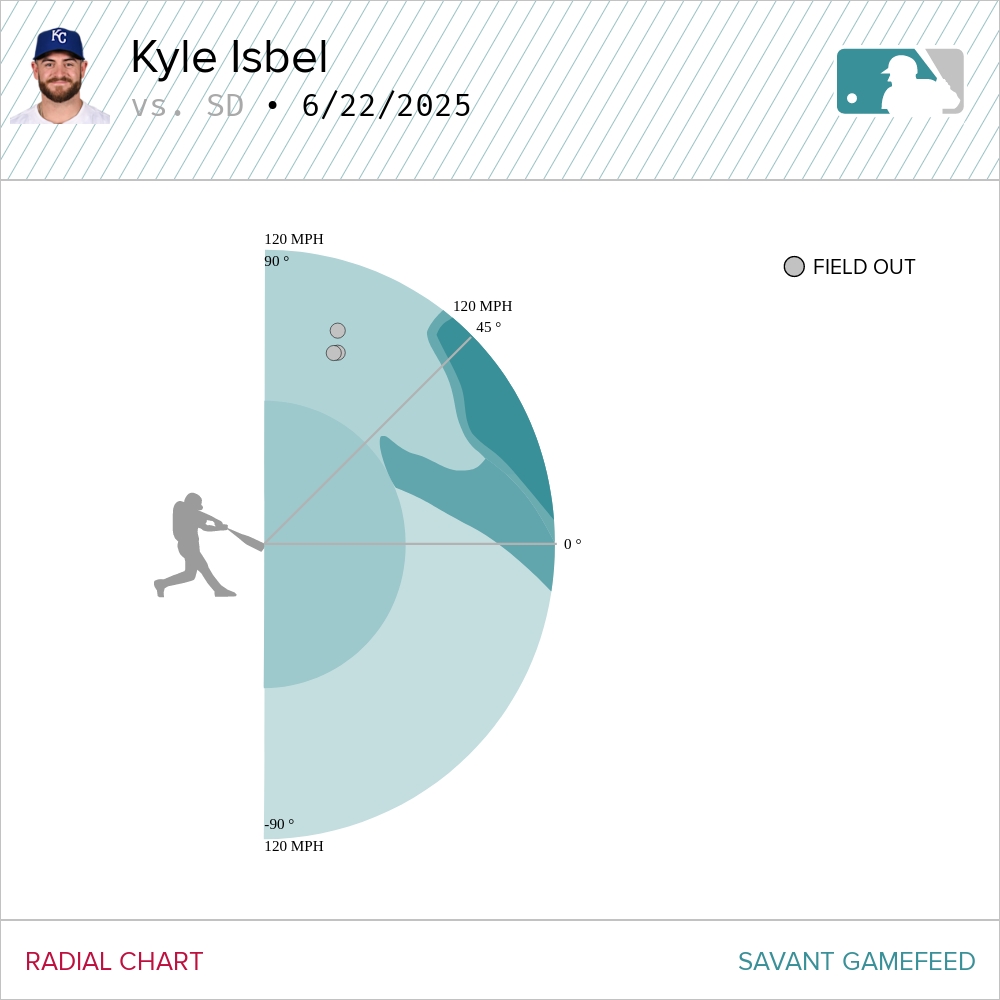 That makes three popups put into play by Isbel on Sunday. Three! They left his bat at a launch angle of 69, 70, and 71 degrees.