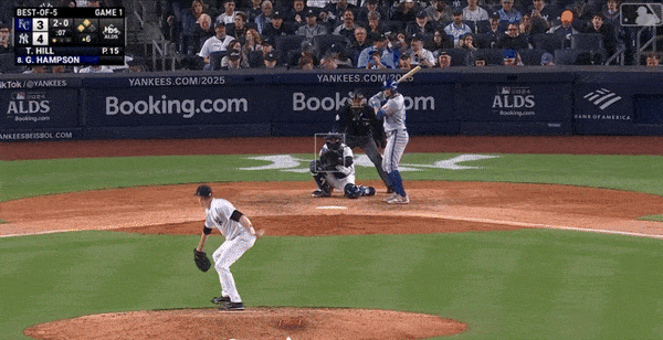 Gurriel opened the sixth inning with a single, his third consecutive plate appearance reaching base. With one out, Tommy Pham hit a ground ball to short that Torres threw away allowing Gurriel to get to third and Pham to second. With lefty Tim Hill on the mound for the Yankees, Quatraro opted to pinch-hit Garrett Hampson for Kyle Isbel. Hampson yanked a low sinker past a drawn-in infield to score both Gurriel and Pham to give the Royals the lead.