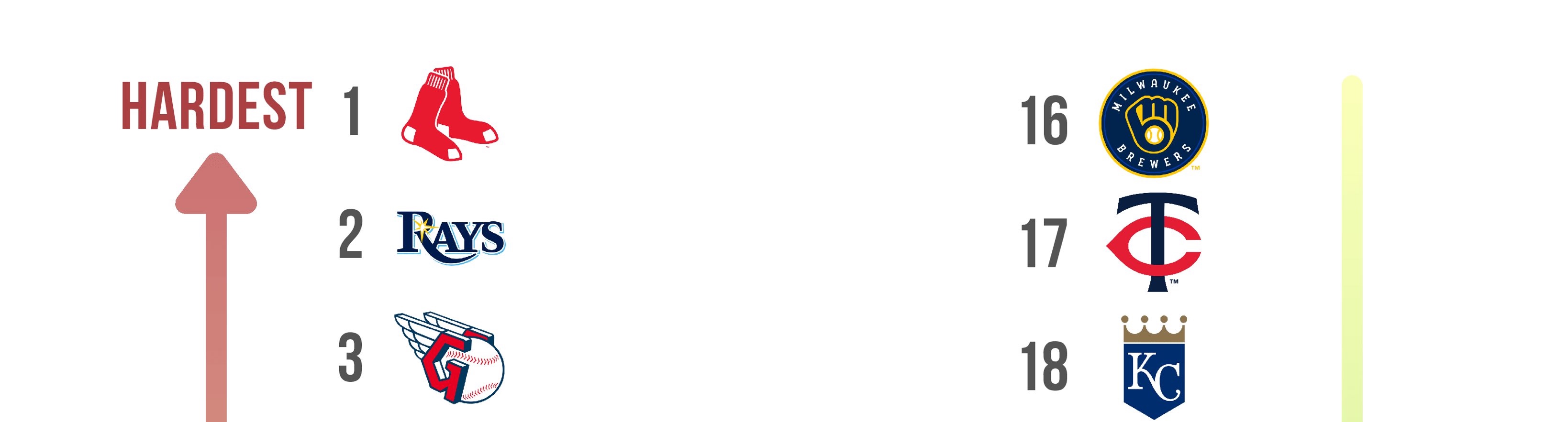 Meanwhile, the Royals and Twins are hovering around the middle of the pack. The Tigers aren’t on the portion of the image cropped above, but they’re 26th easiest overall. At 12 games back in the standings and under .500, they’re less of a threat at the moment in the division.