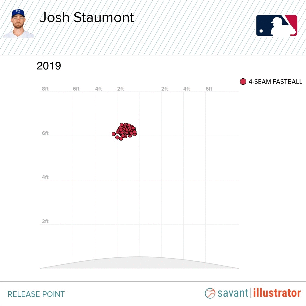 At this point, I would be remiss to not mention that Staumont also throws a sinking, two-seam fastball as well. Offering it just around four percent of the time, he throws it almost exclusively to left-handed batters. It’s notable because he throws the sinker harder than his four-seam. He mentioned this to Laurila: