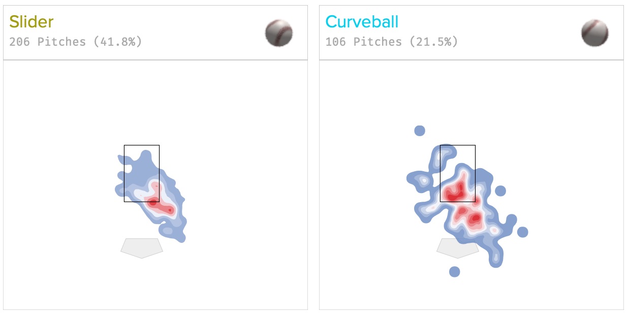 By throwing the slider more to right-handed hitters and with above-average lateral break of the curve breaking into the lefty, Barlow was able to keep most of the contact on those pitches on the ground.