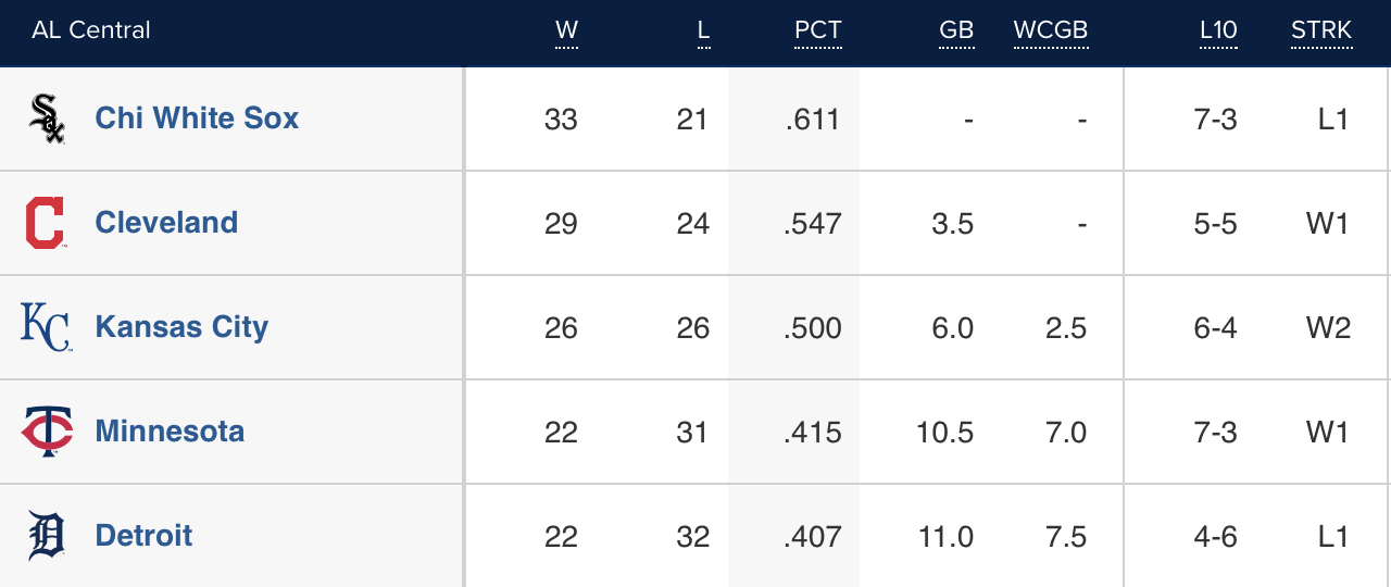 - White Sox 8, Cleveland 6 — 8 innings