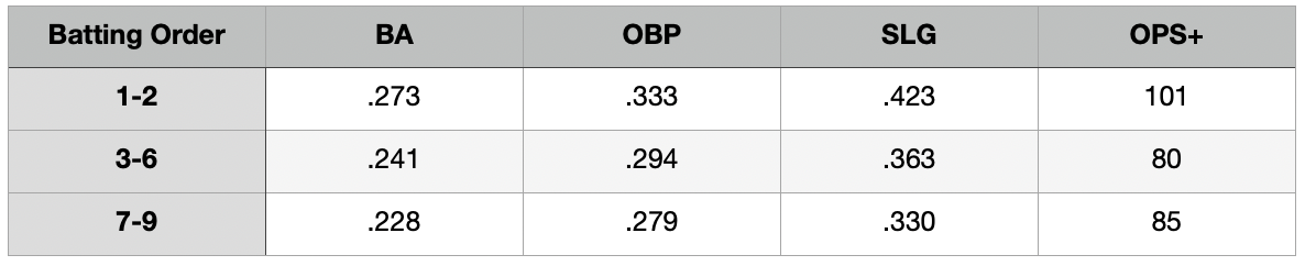 Baseball-Reference does the heavy lifting, breaking the lineup into thirds.