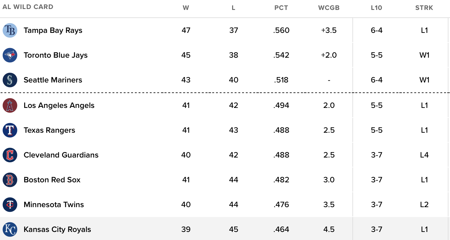 Four and a half games is not an insurmountable deficit. What is daunting, though, is that the Royals have to climb over six teams to get themselves in that final Wild Card spot.