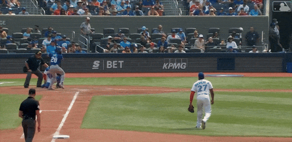 I’d hazard a guess that if Blue Jays first baseman, Vladimir Guerrero Jr. had been playing normal depth and not in and looking for a bunt, he would have picked that grounder and Toronto records an out at first. It would’ve been a productive out, but a double is so much better.