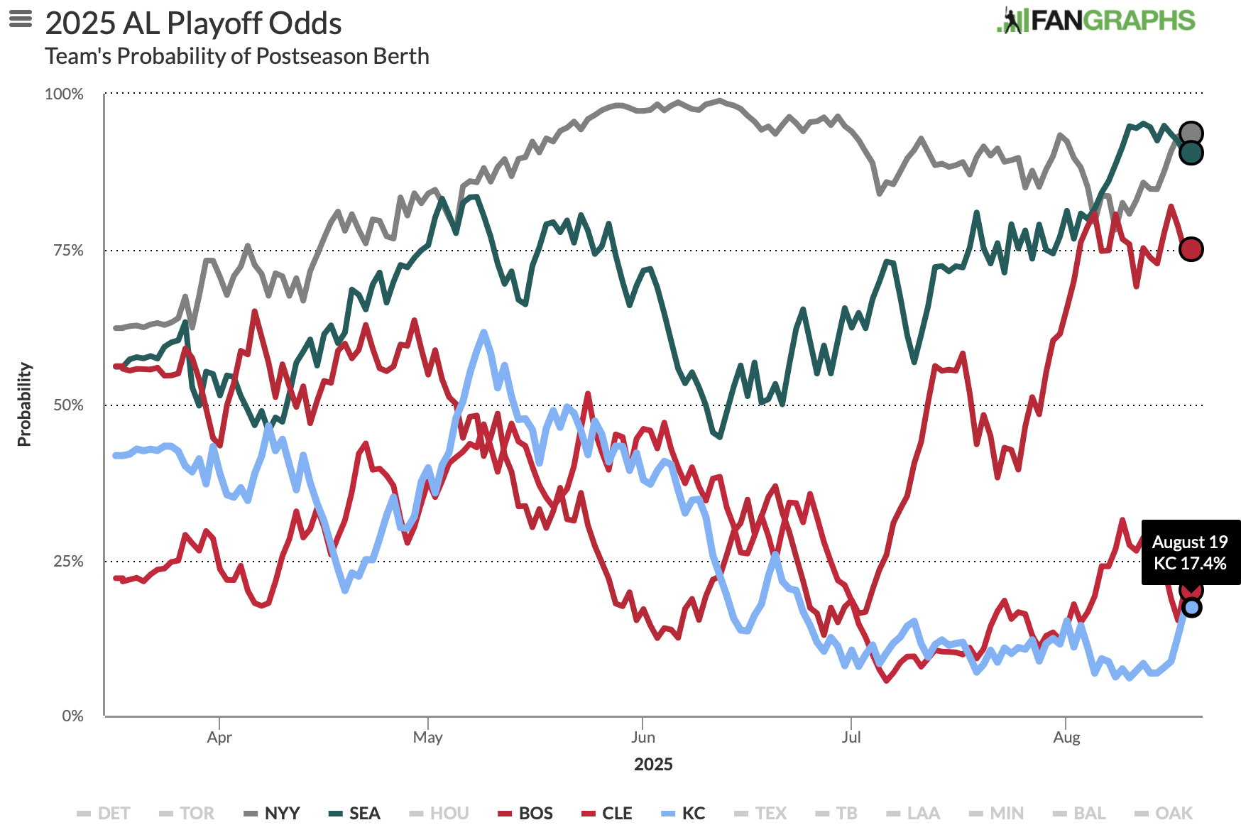 There’s still a long way to go in this race, but the Royals playoff odds are the highest they’ve been since June 23.