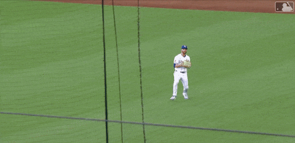 The Rangers runner at third was Joc Pederson. He took off when the ball hit Rave’s glove, looking to give the Rangers a lead. And then Rave uncorked a perfect throw to home.