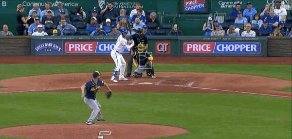 When Maikel Garcia grounded out to third, the opportunity to tack on another looked dim, even with Isbel advancing and Bobby Witt Jr. at the plate. That’s not a knock on Witt (seriously, why on earth would I say anything remotely negative about Bobby Witt Jr.?), that’s just baseball math. Although if there’s a guy you want up at the plate in that situation, it would be Number Seven. (See?) He hit a sharp grounder to third and third baseman Joey Ortiz made a helluva play…one, snaring it on the backhand, and two, getting to his feet and firing a throw across the diamond. Watching the play in real-time, I didn’t think there was any way they would get Witt at first. Credit to Ortiz for making it close. Impressive play, even if it didn’t count for an out.