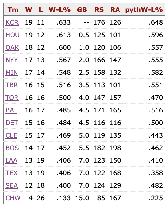 That’s 20 games in 20 days against teams that are currently in first place and the Twins, the team they’re tied with for second place in both the AL Central and the Wild Card.