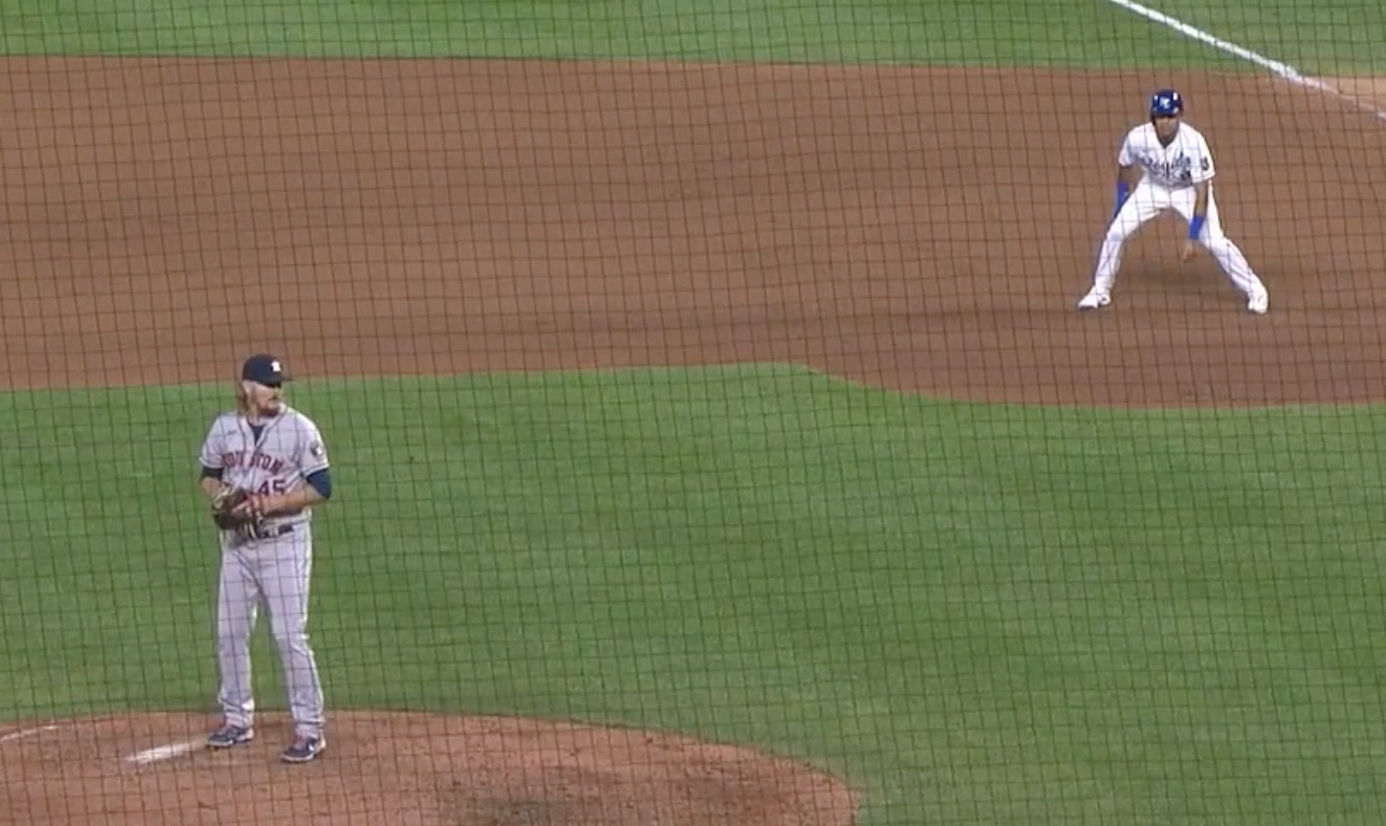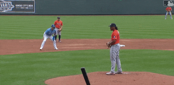 Lopez has become an astute reader of pitchers and their moves to the plate. First base coach Rusty Kuntz deserves some of the credit here as well. Against Astros right-hander Ryne Stanek, Lopez gets an insane jump.