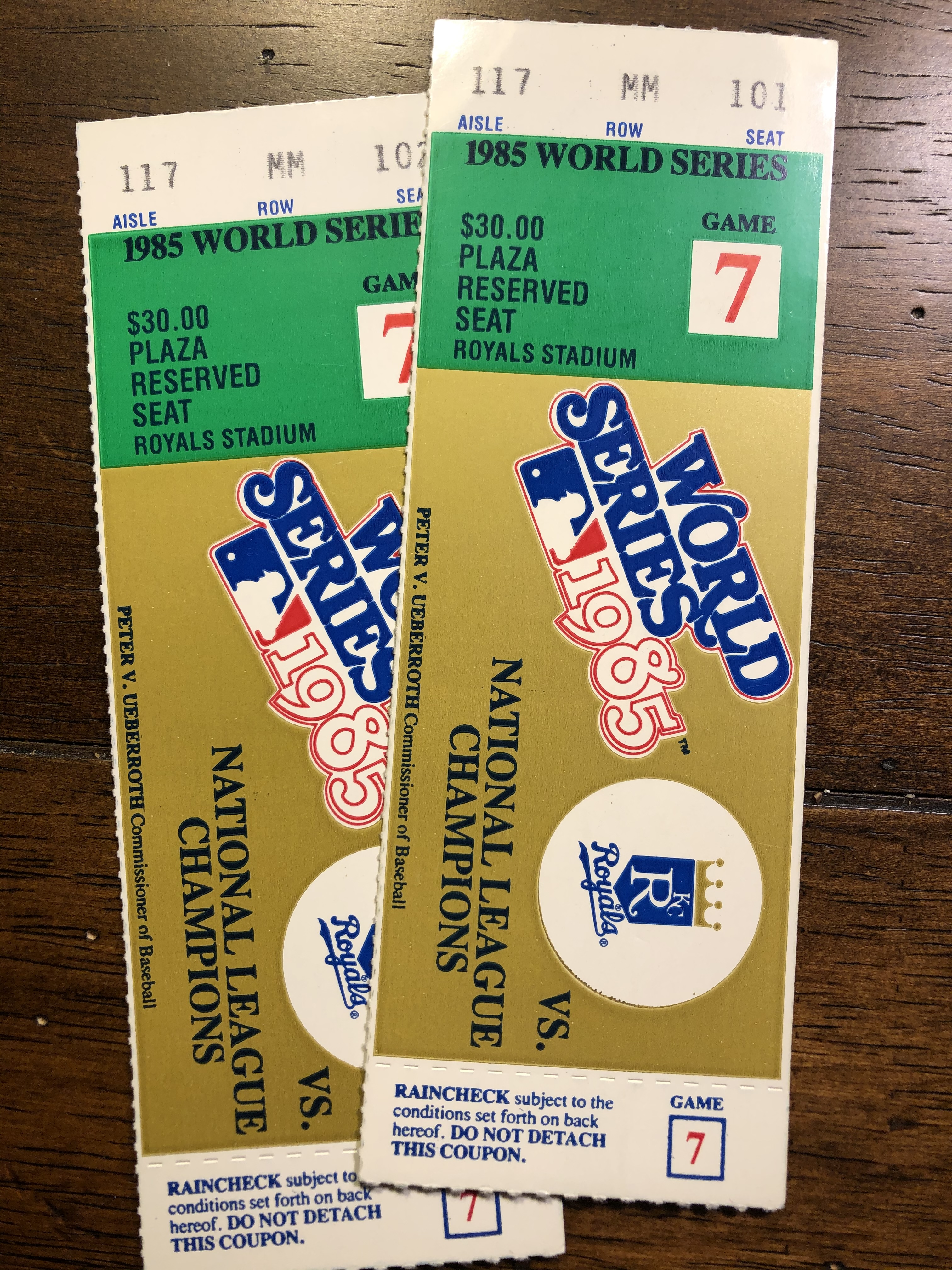 - Game Seven of the 1985 World Series. Those are my tickets above.