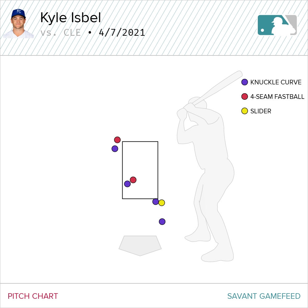 First, let’s start with Kyle Isbel who drew a walk in the seventh. I know, it’s not sexy, but it was a helluva plate appearance.