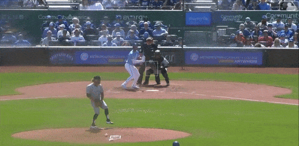 A Velázquez walk opened the seventh. (I love how Velázquez was the table-setter for both of the Royals’ big innings on Sunday.) Blanco was the pinch-runner of choice again and he promptly swiped second. (This all sounds very familiar. Imagine how it must sound to a White Sox fan.) Meanwhile, Melendez whiffed on two four-seamers to open his at bat. He let the next two fastballs go to even the count. Sox reliever Devi Garcia spun a center-cut change that Melendez could only foul off. The sixth pitch was an elevated fastball. It was the last pitch of the at bat. It may as well been the last pitch of the series.