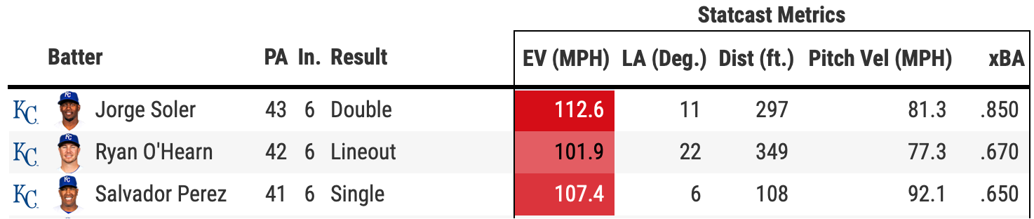 He’s crushing nearly everything this year. If you’re working inside as the Royals did in the first three plate appearances, you damn well better hit your spots. It was a costly lesson.
