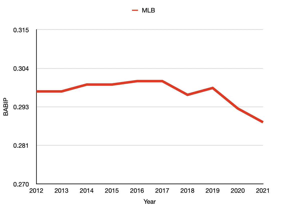 Still, when talking about the MLB—the league—as a whole, a .300 BABIP is generally a good jumping-off point. Or at least it used to be.