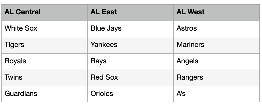 The Wild Card teams are the Yankees, Rays and Mariners.