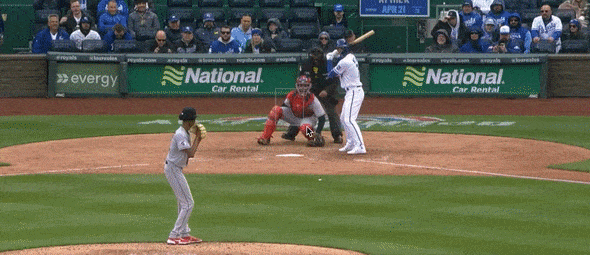 Leading up to that…happening, Witt had had a quiet first couple of plate appearances, flying out in his first at bat and grounding out in his second. In his third plate appearance (and first of the game against Cleveland reliever Triston McKenzie—remember that) Witt hit a ground ball to short that was scorched, coming off the bat at 110.4 mph. On an afternoon where the elements made it absolutely miserable to hit a baseball, it was the hardest-hit ball of the afternoon.