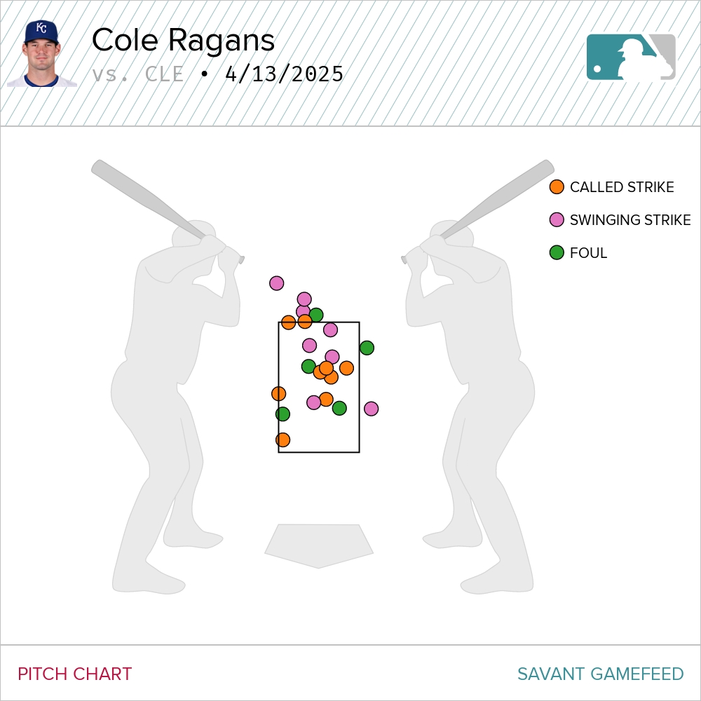 On Sunday in Cleveland, Ragans threw his fastball 48 percent of the time. Guardians hitters fouled off that pitch only five times while Ragans generated just eight whiffs on the pitch.
