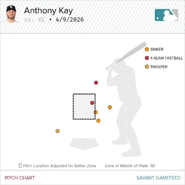 In his first two starts of the season, White Sox lefty Anthony Kay had faced a left-handed batter just nine times. Collectively, lefties had not recorded a hit against Kay and struck out once. It’s a small sample, but hang with me.