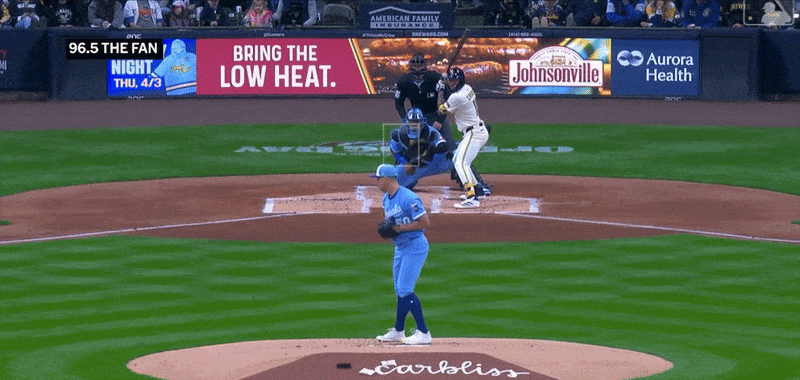 That was just a prelude to Bubic’s afternoon, where he routinely stymied Brewers hitters. The velocity gain on the four-seamer he flashed coming out of the bullpen last season in his first action since coming back from Tommy John surgery proved sticky—his average fastball rode in at 92.5 mph and topped out at 95.3 mph. He registered 11 whiffs on the pitch. Eleven! He kept the pitch elevated, which is what he will want to do and even got some elevated chase on the offering.