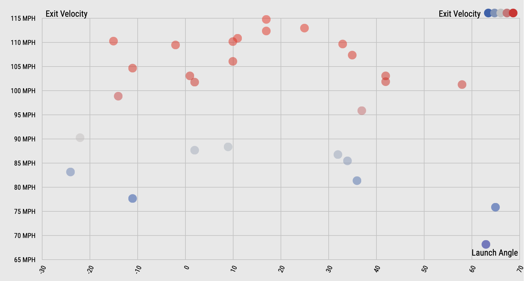 Soler is making ferocious contact. The fact he’s posted a .222 BABIP in this stretch while averaging an exit velocity of 97.8 mph is a joke. The man has been pulverizing the baseball. This may be the best way to visually present the blistering contact Soler has been making. These are the balls he’s put in play since April 17, covering 11 games before Wednesday’s game in Pittsburgh. The cluster above 100 mph with the relative absence of plots below 90 mph is staggering.