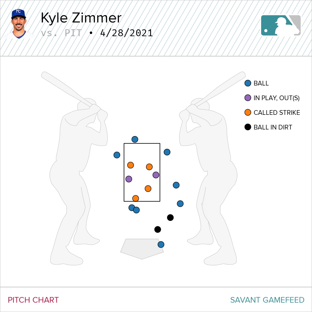Kyle Zimmer didn’t have the command on Wednesday and the Pirates chased nothing out of the zone from him, but he got the two outs he needed without allowing any more damage.