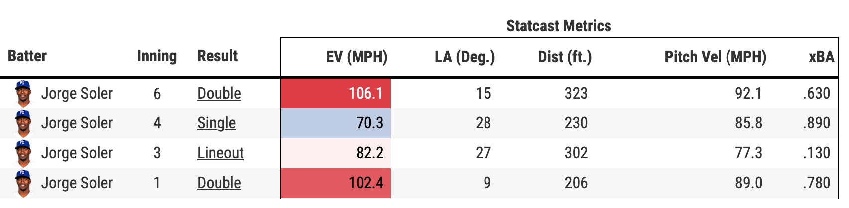If you visit Jorge Soler’s page at Baseball-Reference or Fangraphs, one could get the impression he’s been less than productive offensively speaking. Your impression would be correct. Entering Wednesday’s game, the Royals’ primary DH was hitting .186/.301/.343 with an 81 OPS+ and an 87 wRC+. He has yet to put together any kind of string of success at the plate. Over his previous 11 games, he was hitting .200/.293/.400 with a .222 BABIP.