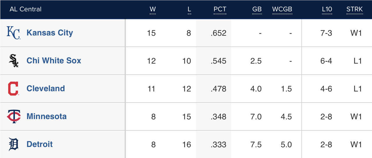Beware the slumping team beginning to shake off those early-season doldrums. Especially just before the Royals head to town.