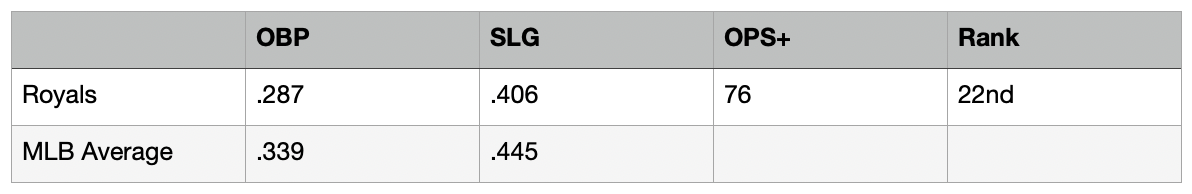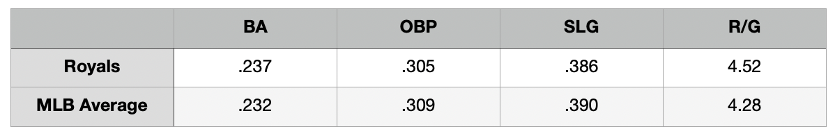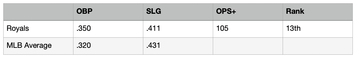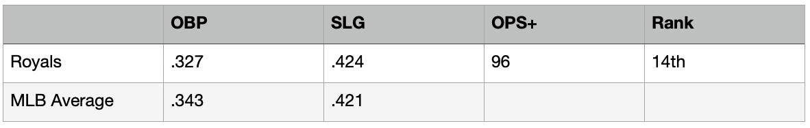 If you’re looking for a league average offense, you really can’t get much closer than what Kansas City is putting on the lineup card night after night.