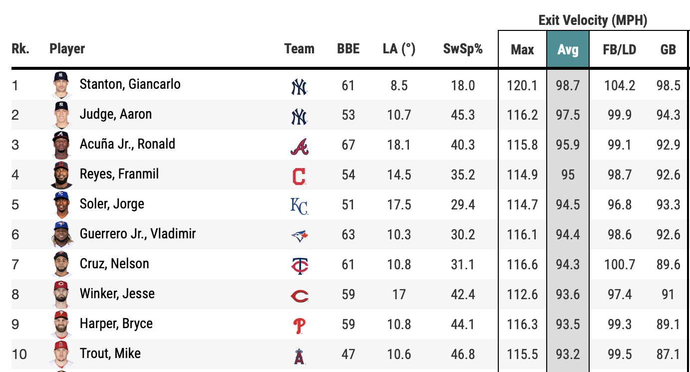We discussed this in Thursday’s newsletter, but it bears repeating. Soler has been crushing baseballs. Overall, he ranks fifth in average exit velocity and ninth in Hard-Hit rate in games played through Thursday. These are some names.