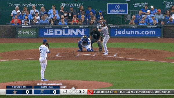 The above statement may seem strange, given there’s a pitch sitting almost pure in the middle of the dish. But that was a first-pitch change to Yordan Alvarez in the first inning. He went back to the middle for the second pitch, a 95 mph sinker. Ahead 0-2, Singer finished off Alvarez with a nasty slider.