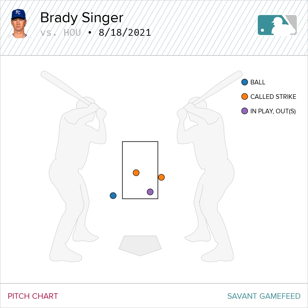 This wasn’t Singer’s best start of 2021—he had a pair of strong back to back starts in mid to late April—but it was his best start in a long, long time. The sinker was working from the jump.