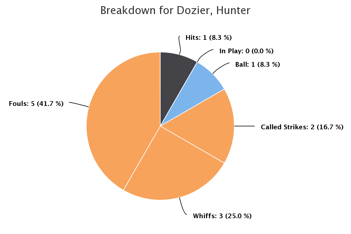 Let’s get extremely granular. Dozier has seen 12 sliders in that exact location this year. He’s swung at nine of them. That’s the first one he hasn’t missed or fouled off.