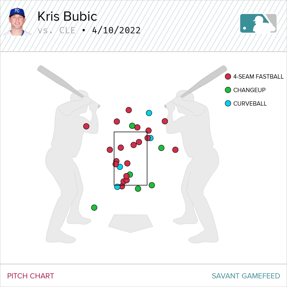If you tuned in to the game to see Kris Bubic unveil his new slider, it was a no-show. Literally. He didn’t throw it. Not that he had the opportunity, sticking around for only five batters. In his abbreviated afternoon, Bubic got Guardian hitters to swing nine times. The result was four balls in play, five fouls and no whiffs.