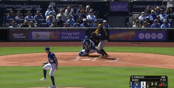 With the count full, a runner on third and two out, Bubic went back to his fastball. A challenge pitch. Sánchez was up for the challenge. Goodbye, baseball. The Brewers led 3-0 before the Royals came to bat.