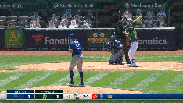 Maybe Kowar was a little more comfortable against the hitters from the right side. His battles with them were generally shorter and while he was still lacking control of the fastball, he was locating within the zone at least a little better. (Believe me, I’m desperately trying to find something good here.) He threw two change-ups to right-handed batters, both in the zone, both early in the count. He retired Chad Pinder on a force to end the first on a first-pitch change. Then he allowed a two-run double to Matt Chapman in the second.