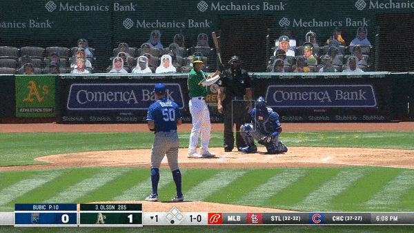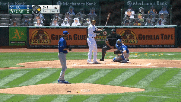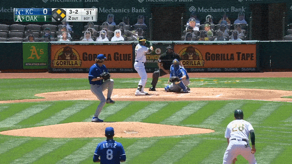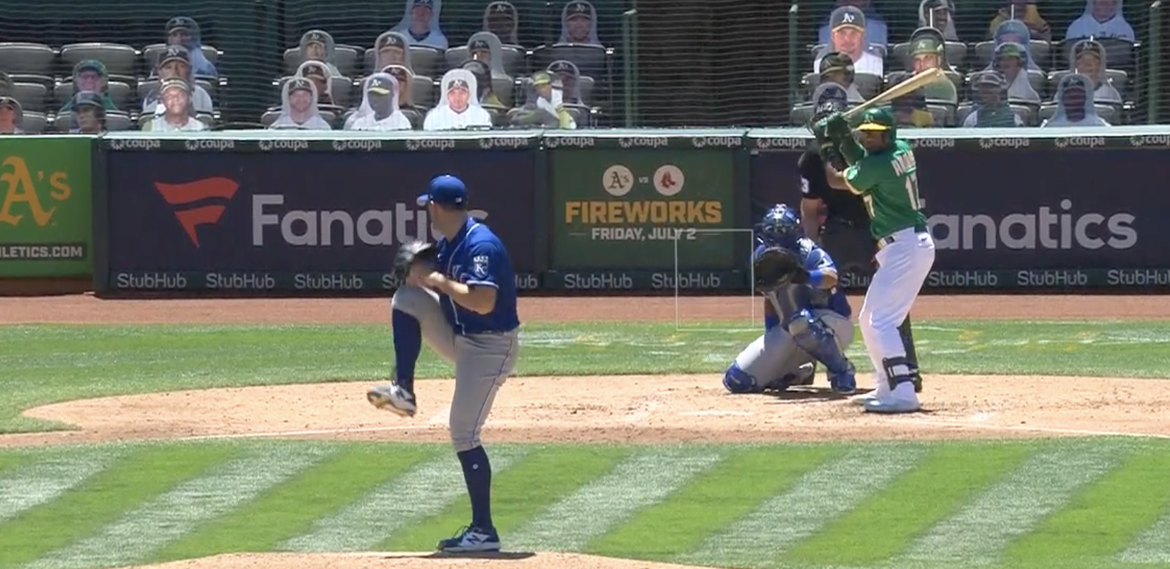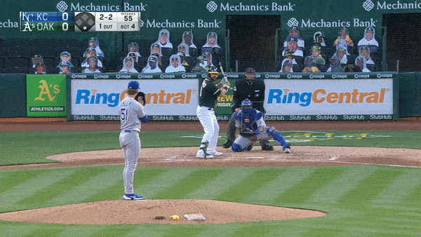 If you were searching for competitive baseball this weekend, Friday night was the pick of the bunch. Brady Singer had a Very Brady Outing, working around an error and a walk in the first and a two-out double in the second before momentarily losing it in the fourth. In that fateful frame, the A’s scorched him for three runs on back-to-back doubles from Mitch Moreland and Matt Chapman before Seth Brown finished off the scoring with a two-run bomb.