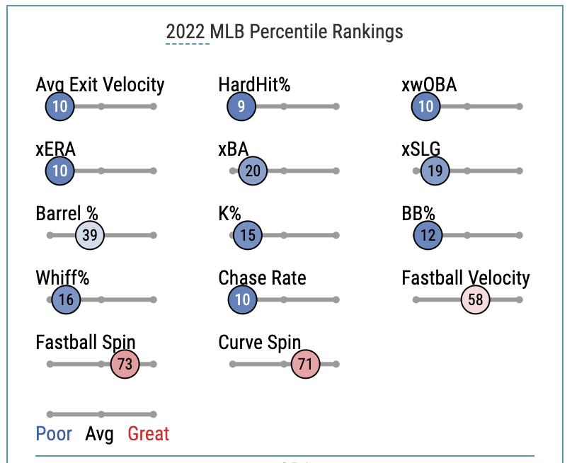 His percentiles on his page at Baseball Savant are similarly confounding. Heasley sports poor quality of contact rates along with subpar strikeout and walk rates.