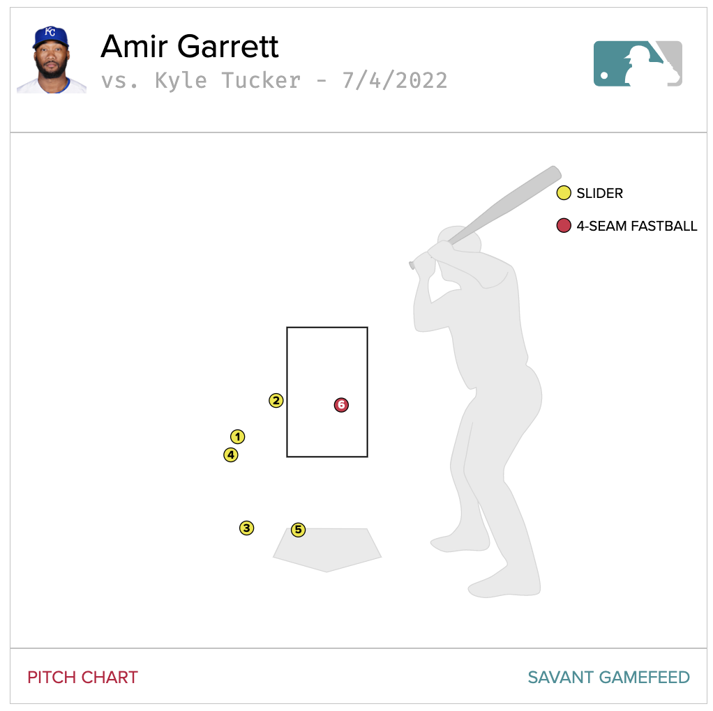 He was everywhere but middle-middle with the four-seam. So while he only got one swing and miss on the four-seamer, he was locating in a space where if the Astros made contact, it wasn’t going to hurt. Indeed, while a couple of those fastballs were hard-hit, they were generally under the pitch and lofting them high in the stratosphere. Take the Jose Altuve encounter in the first. It was 105 MPH off the bat, but with a launch angle of 55 degrees, it had an xBA of just .020. Same with a Kyle Tucker flyout in the second. The only four-seamer that was punished came off the bat of Alex Bregman in the sixth that took Edward Olivares to the wall in right. Heasley, who was allowing a .300 BA and .650 SLG on four-seamers entering Monday’s game didn’t allow a single knock on the pitch. Location, location, location.