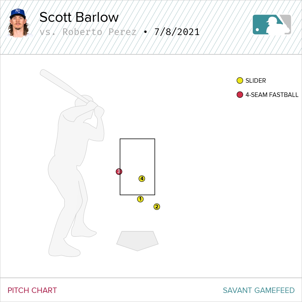 Barlow, like so many effective pitchers, spots his slider down and away from right-handed batters.