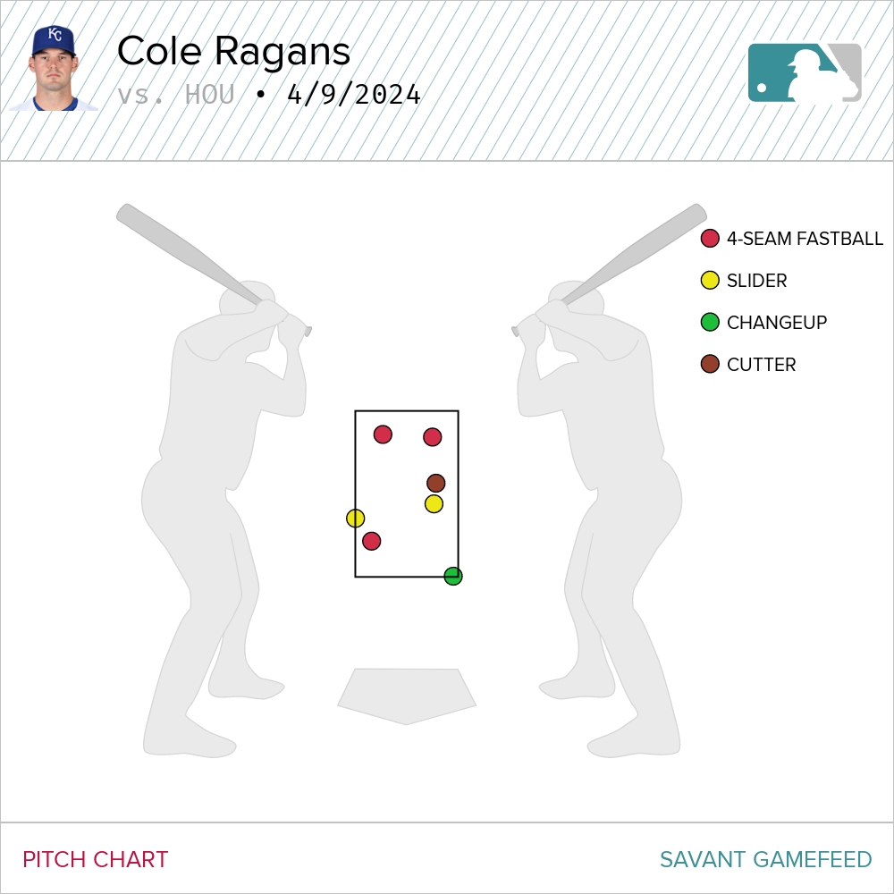 The Astros worked him for 43 pitches the first time through the order. The result was four singles. The second time through the order, Ragans allowed five baserunners—three singles, a double and a walk.