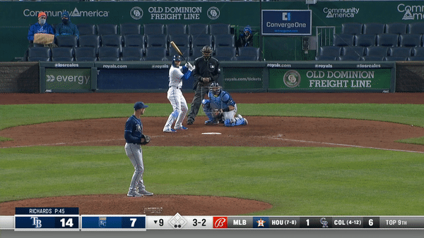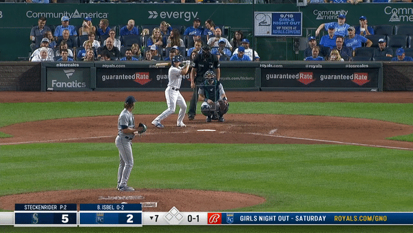 There are some similarities in the swings, but the differences are what powered Isbel to a much better month. The hip slide in the above gif has him seemingly off balance to where he pops up an elevated fastball. While the pitch in the gif from September is lower, you can still tell how eliminating the hip slide has let to better bat control, allowing him to get a meatier part of the barrel on the ball.