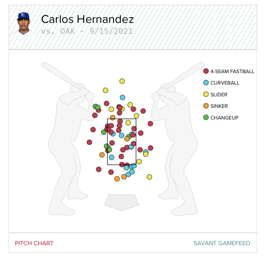 This is Hernandez’s pitch chart through his first three innings of work on Wednesday. It is the chart of a tired pitcher.
