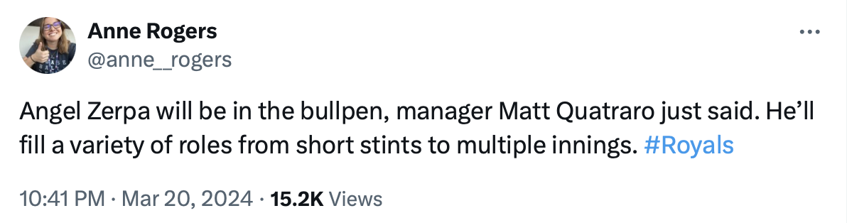 Again, Quatraro and the Royals are setting themselves up to have all the options coming out of the bullpen. With Zerpa and another pitcher like Lyles in the pen, the Royals have a luxury of having a couple of guys who can go multiple innings should the starters take a couple of hits. They also could act as the bulk guys in a situation where the Royals would decide to go with an opener. There’s just so many ways to mix and match.