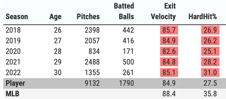 While Yarbrough is throwing strikes, the results haven’t been there for the last couple of years. That’s obviously behind the reason he was DFA’d by Tampa last month. (Tampa connection alert! Obviously, new manager Matt Quatraro is extremely familiar with the lefty.) His ground ball rate has dropped while he’s had an issue keeping balls in the yard. Maybe the new pitching coaches can help him find a little more sink on a couple of his pitches.