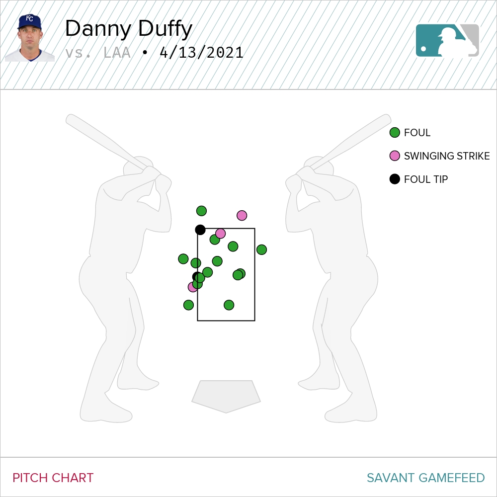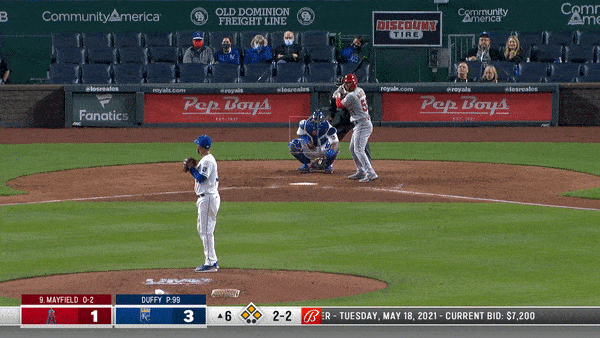 - Duffy got him swinging on a slider down below the knees in the third. (As seen in one of the gifs above.)
